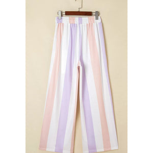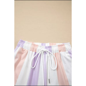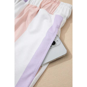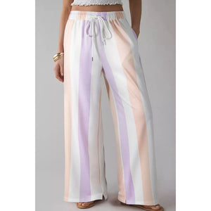 Stripe Multicolored Print Drawstring Loose Pants with Side Pockets