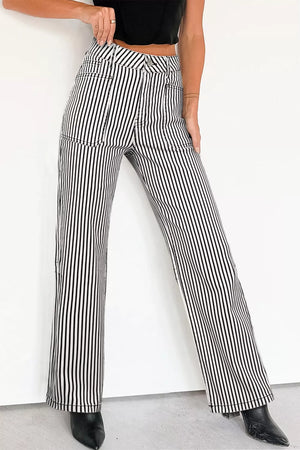 Stripe Patch Pocket High Waist Shift Denim Jeans