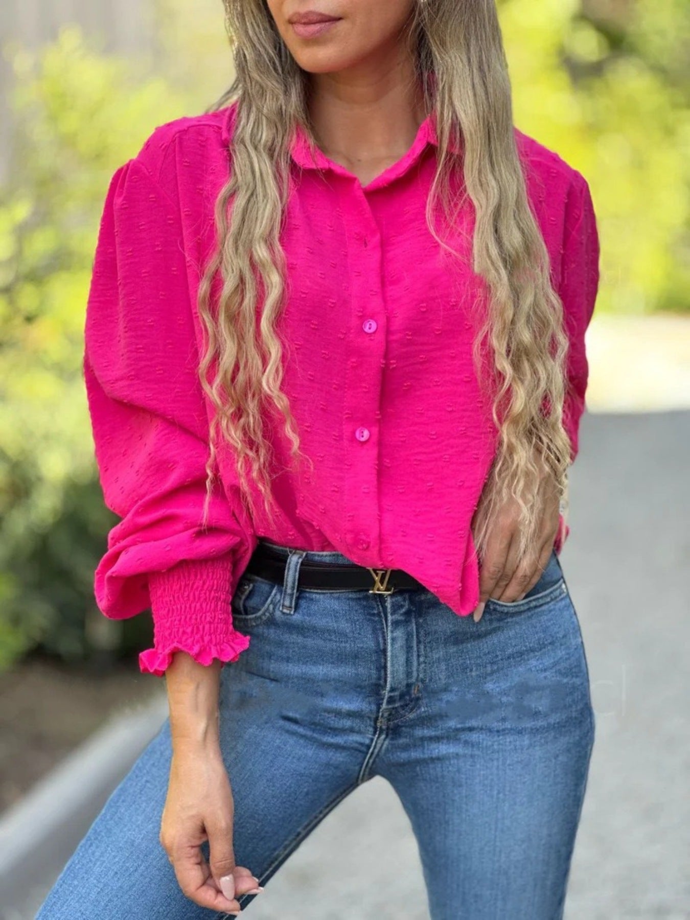 Swiss Dot Button Down Shirt