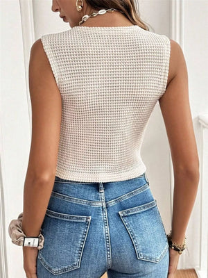 Textured Button-Front Sleeveless Vest Top