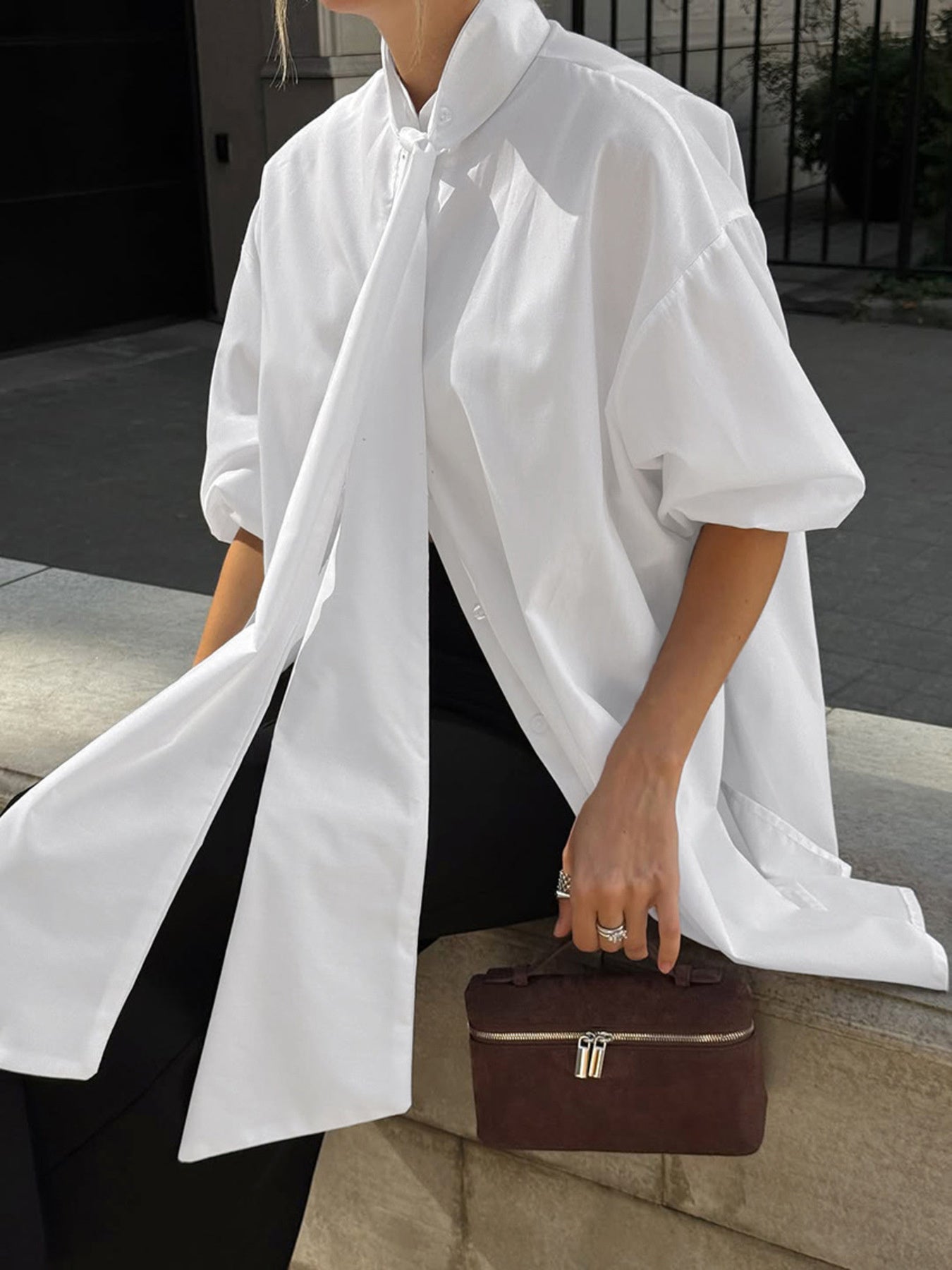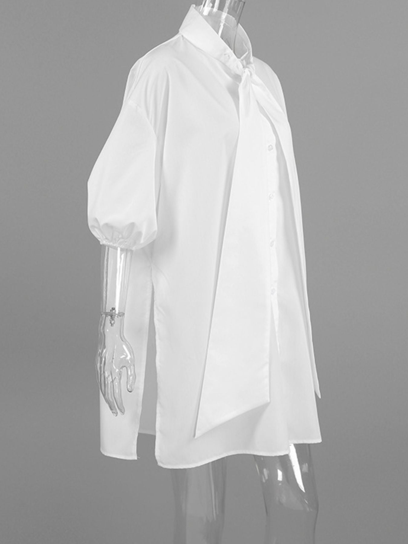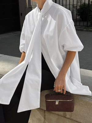Tied Button Up Puff Sleeve Shirt