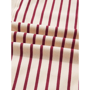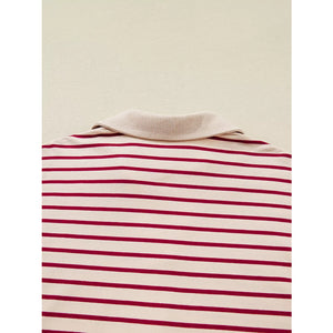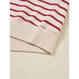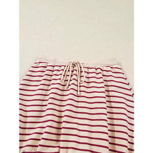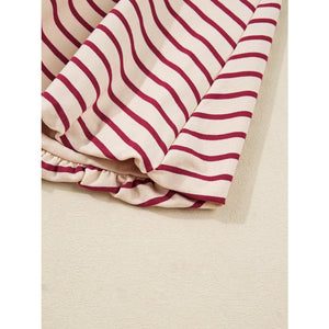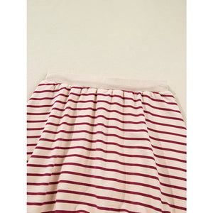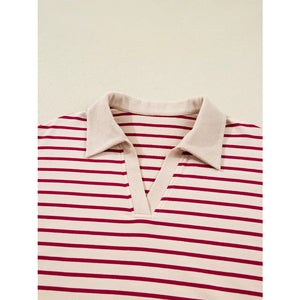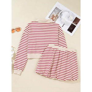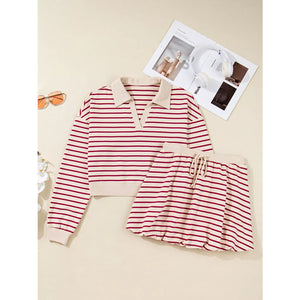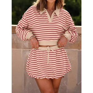 tripe Cropped Collared Drop Shoulder Pullover and Bubble Mini Skirt Set