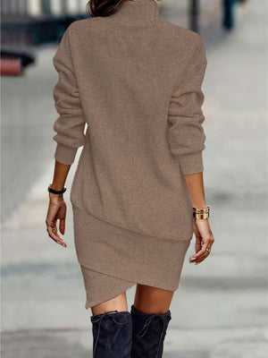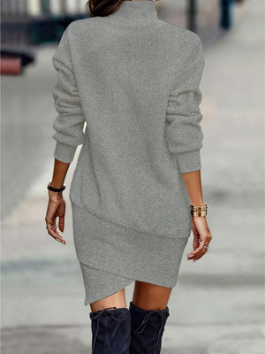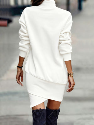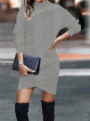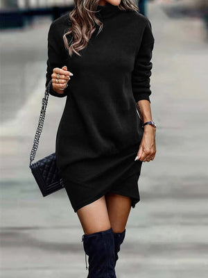 Turtleneck Long Sleeve Asymmetrical Hem Mini Dress