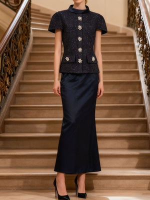 Tweed Jacket and Satin Skirt Set