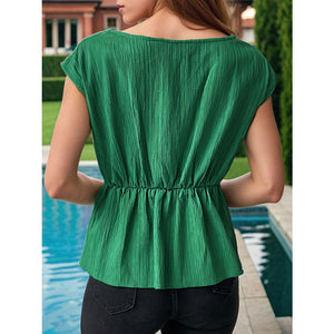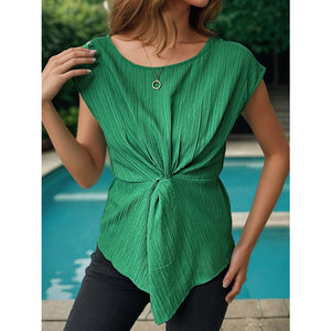 Twisted Round Neck Cap Sleeve Blouse