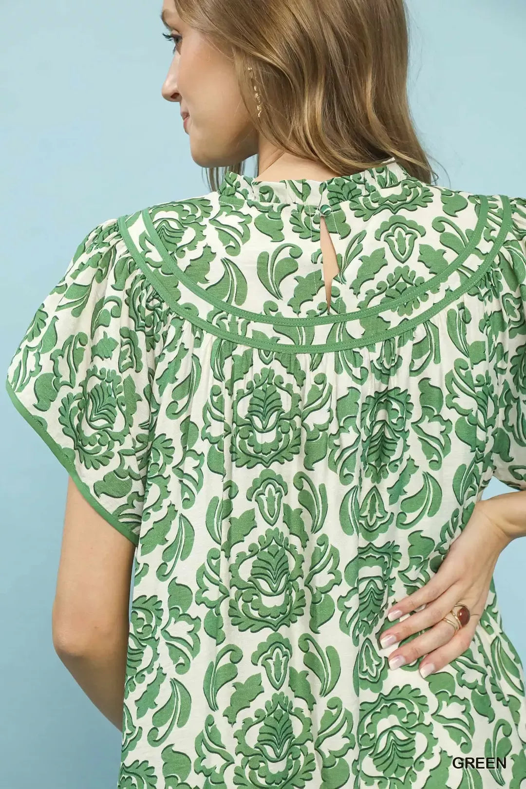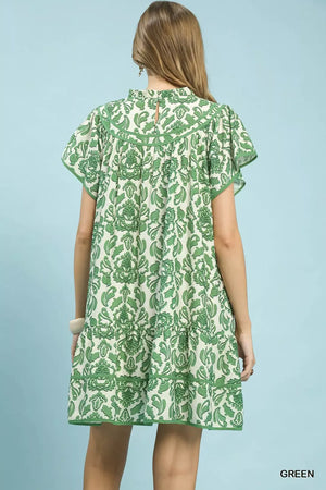 This Abstract Print Babydoll Mini Dress is a playful and stylish addition to your wardrobe. The round neckline with contrast piping trim adds a touch of sophistication to the dress. Featuring short flutter sleeves and a tiered babydoll silhouette, this dress offers a flattering and feminine look. The solid contrast detailing adds visual interest to the abstract print design. With the added convenience of pockets and a lined interior, this dress strikes the perfect balance between fashion and function. Embrace a chic and trendy style with this eye-catching mini dress that is both versatile and on-trend.