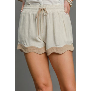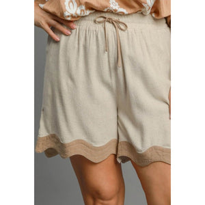 Umgee Full Size Color Blocked Scalloped Hem Shorts Plus Size