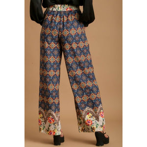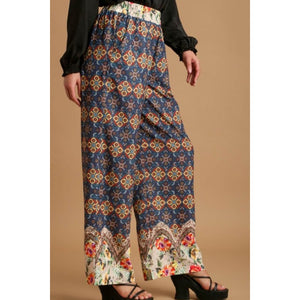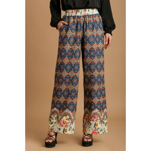 Umgee Full Size Mixed Print Elastic Waistband Pants Plus Size