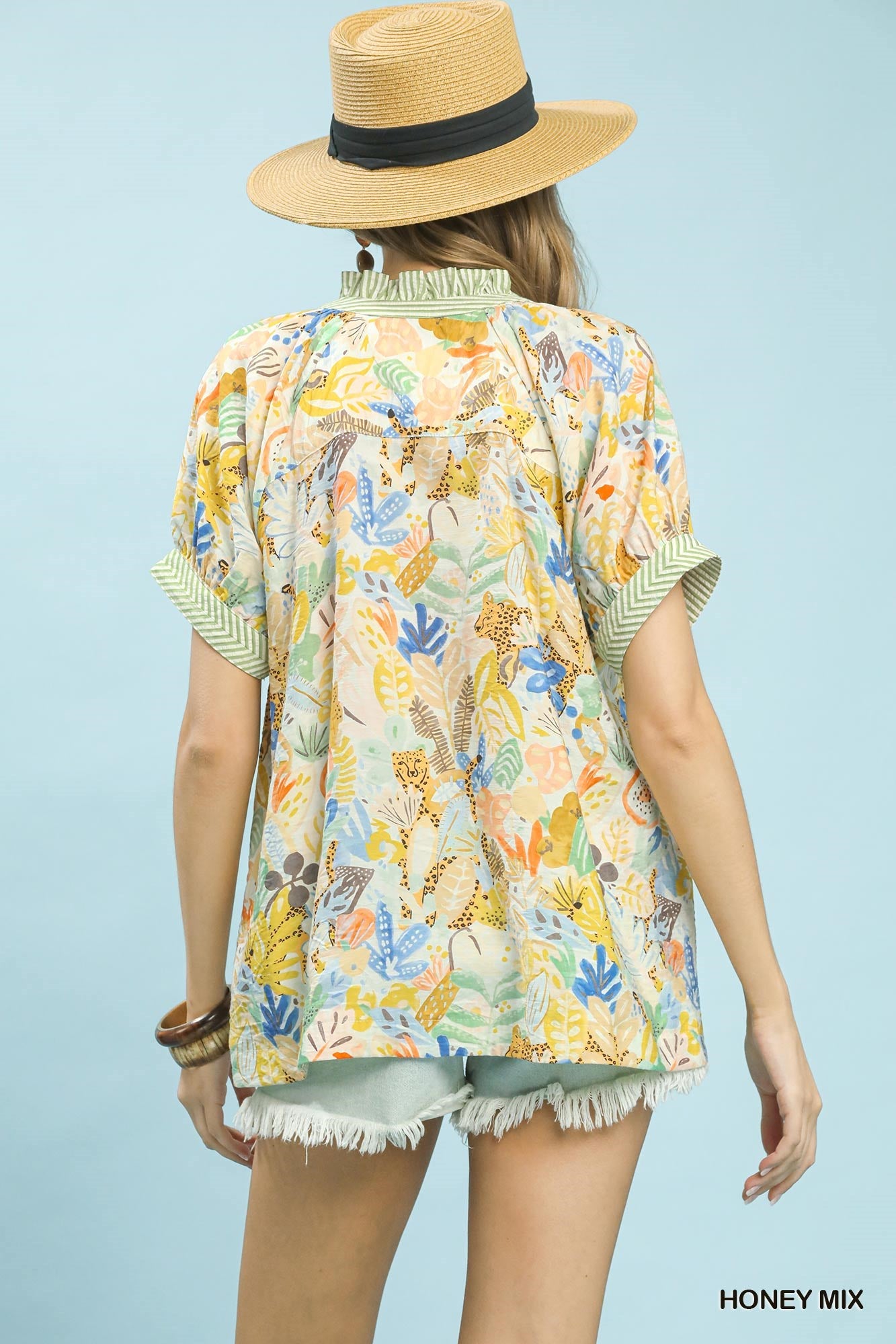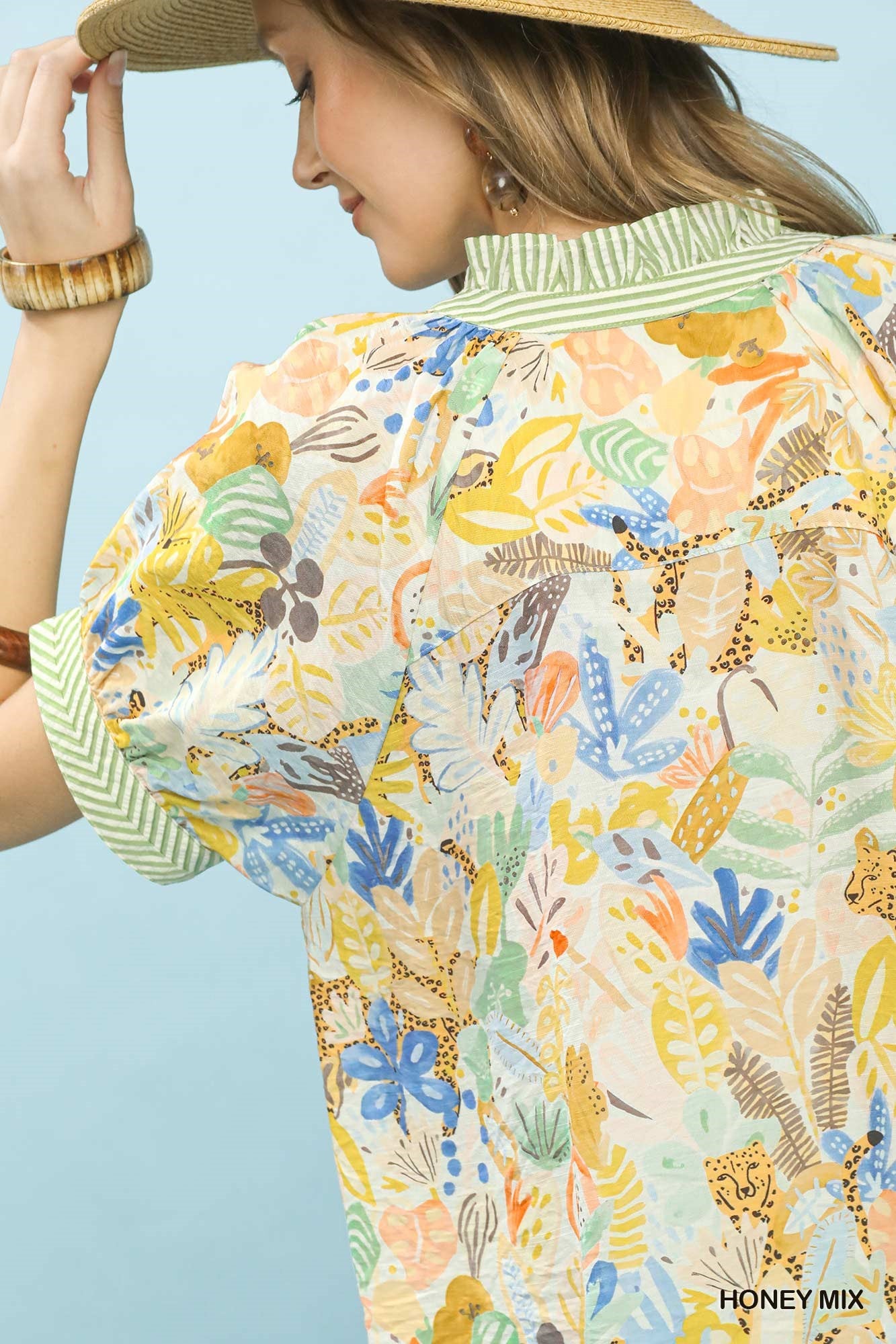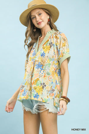 Umgee Mix Boho Printed V-Neck Top