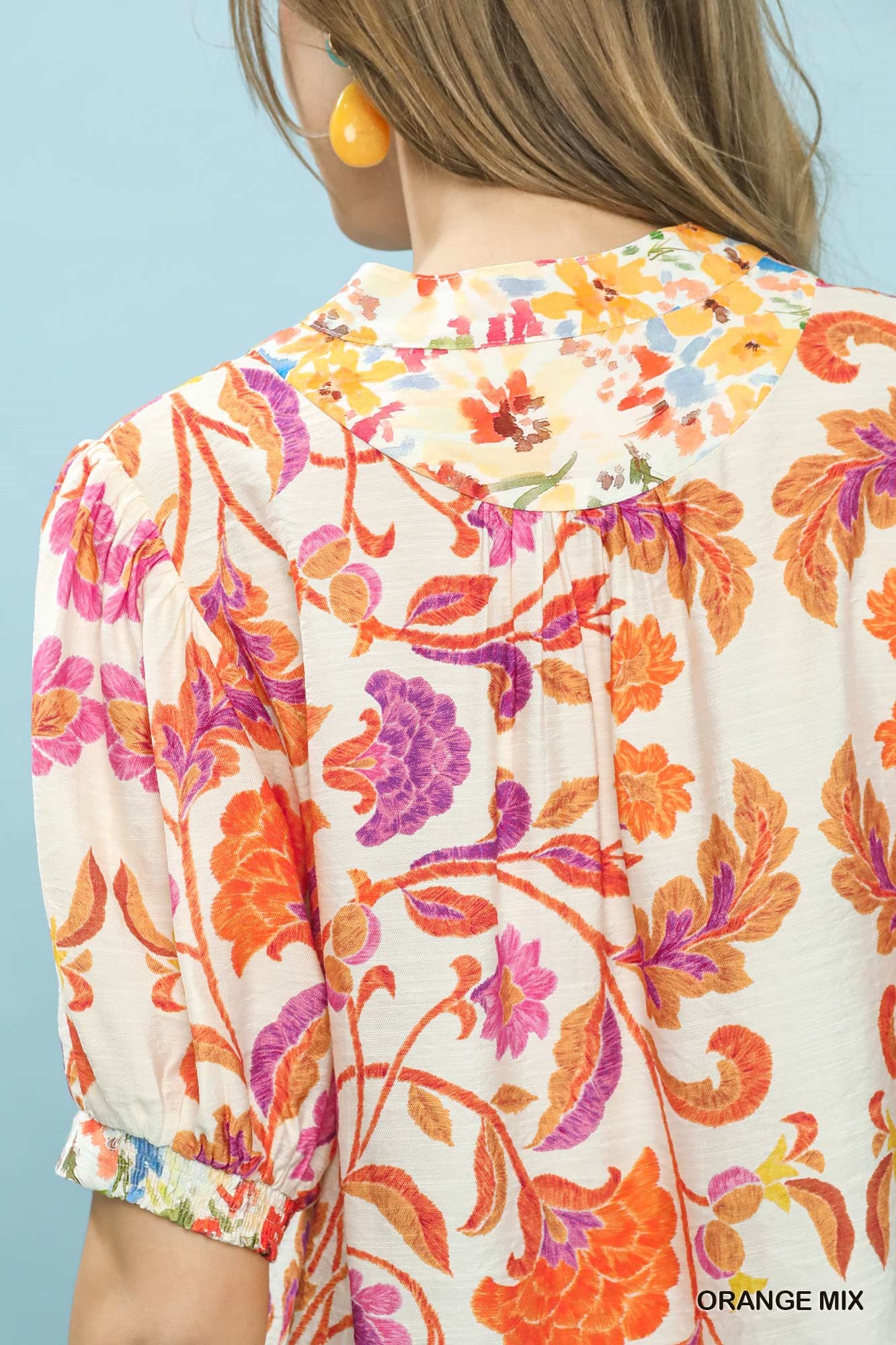 Umgee Mix Floral Split-Neck Short Sleeve Top