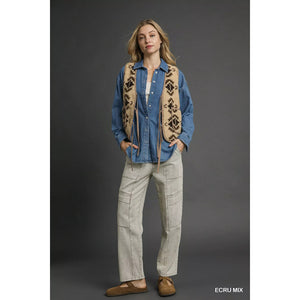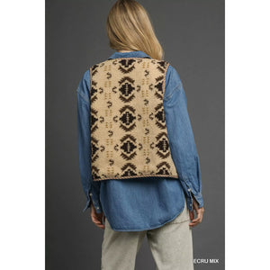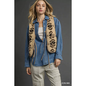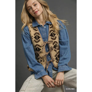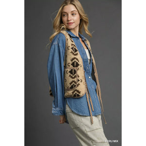Umgee Mix Patterned Sherpa Tie-Front Vest