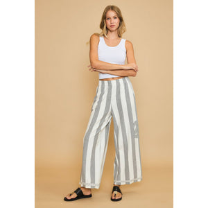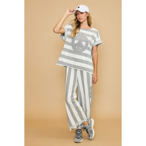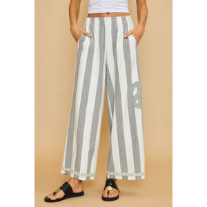 Umgee Peace Sign Patch Striped Wide Leg Pants