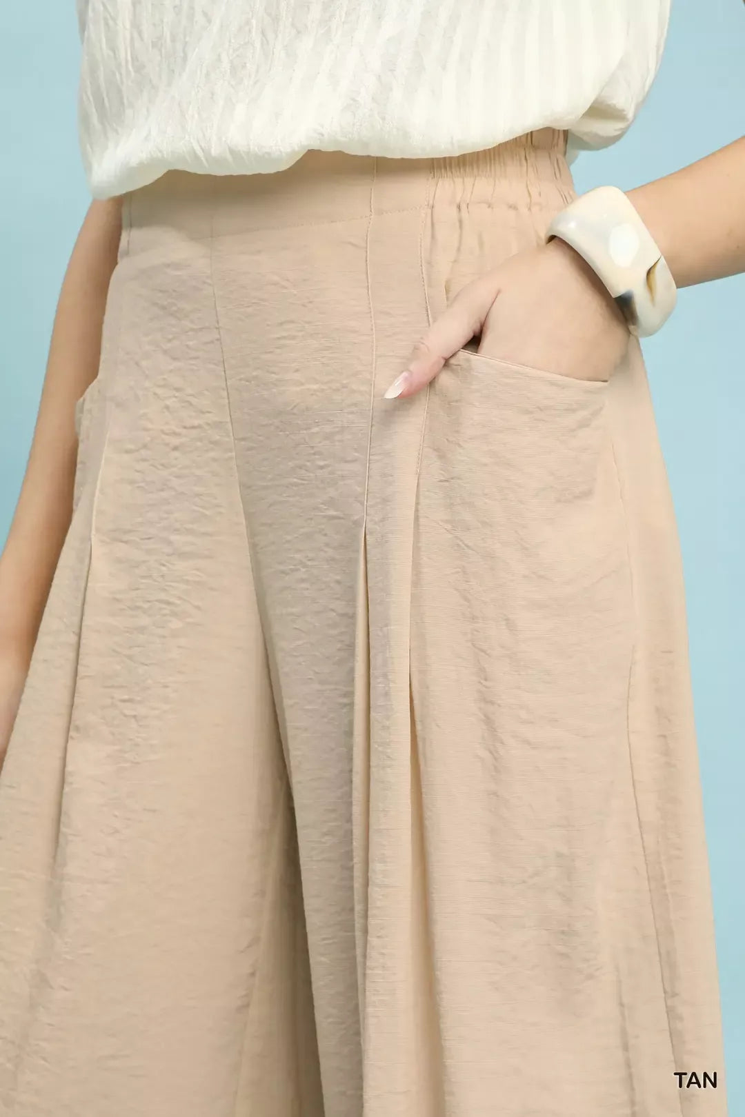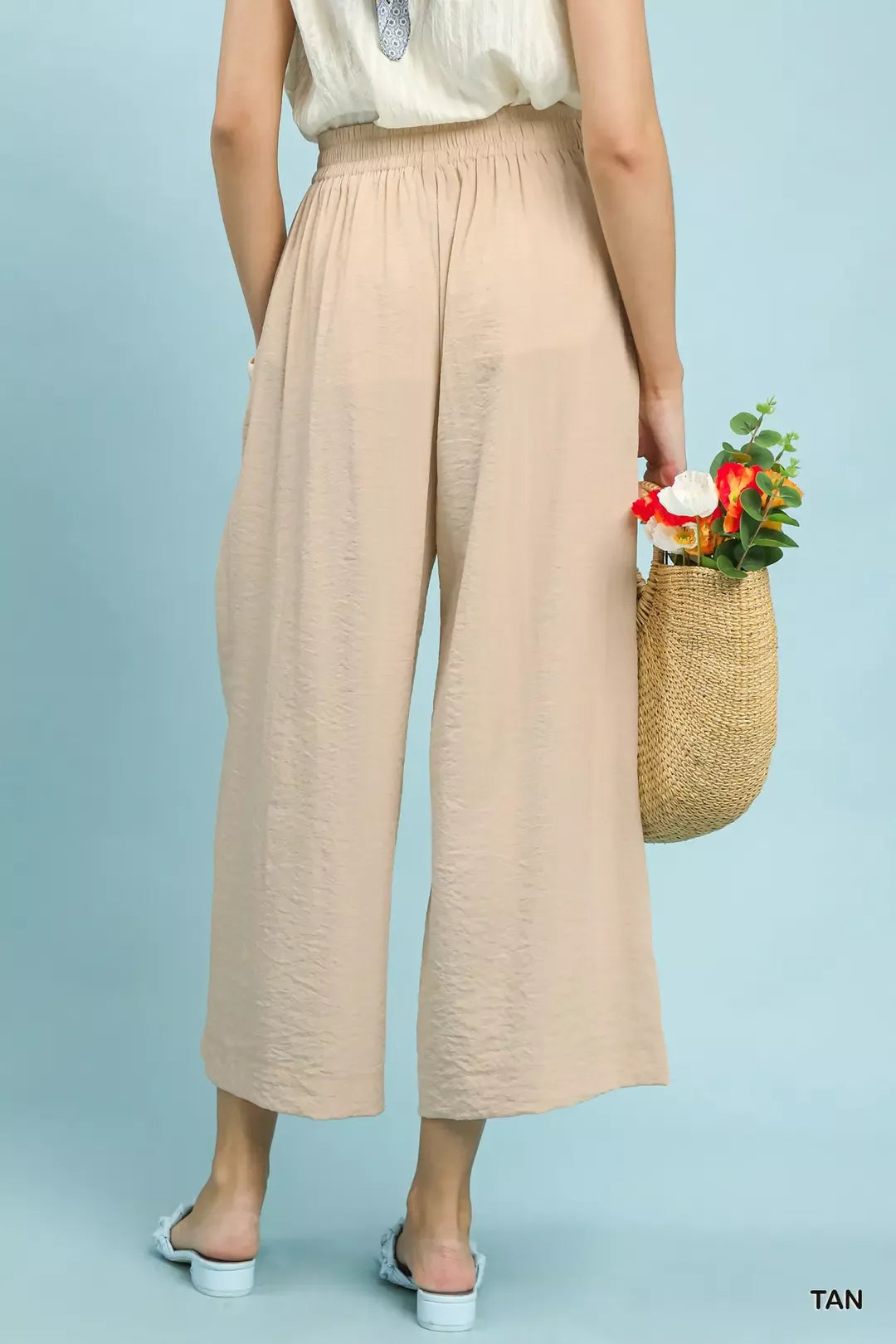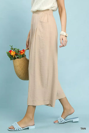 Umgee Solid Pleat Wide-Leg Cropped Pants
