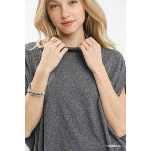 This textured mock neck relaxed top offers a cozy and stylish look with its fleece texture and mock neck design. The short dolman sleeves with side slits add a modern touch to the relaxed silhouette. The straight, easy-fit hemline provides a comfortable and effortless fit for everyday wear. Ideal for layering or wearing on its own, this top is versatile and easy to style. Please note that it is not lined, making it great for layering during cooler months.