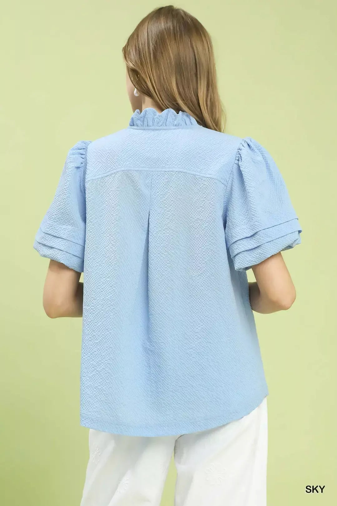 Umgee Textured Scallop Trim Puff Sleeve Blouse