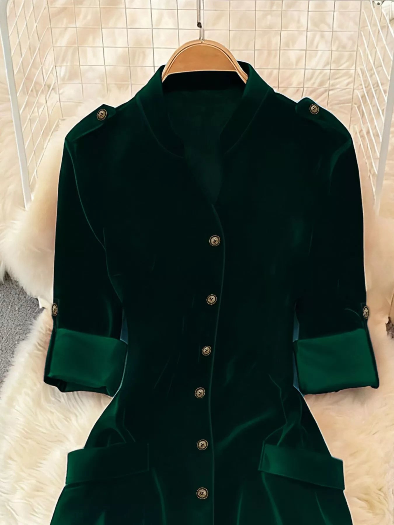 • Features:Buttoned,Split,Pocketed