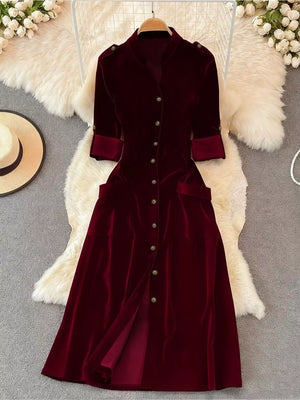 Velvet Button-Down Midi Dress