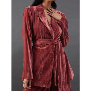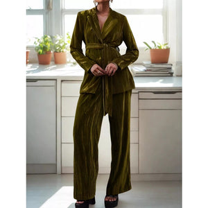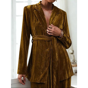 Velvet Lapel Collar Blazer & Pants Set