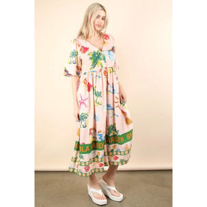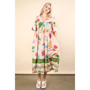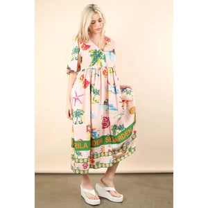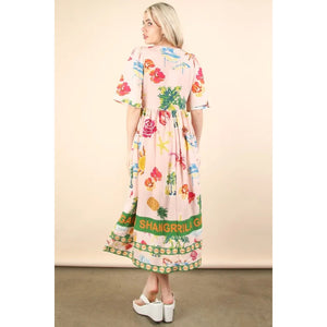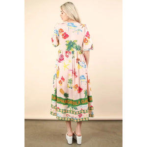 A button-down printed midi dress is a versatile and stylish piece featuring a mid-length hemline and a button-up front closure. The dress is adorned with a colorful or patterned print, adding a playful and fashionable touch to the design. Perfect for various occasions, this dress can be easily dressed up or down to suit different styles and preferences.