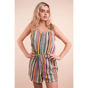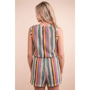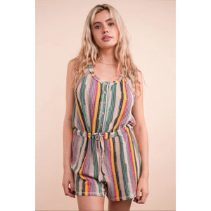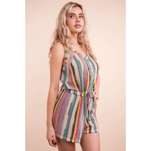 VERY J Crochet Multi Color Striped Casual Summer Romper