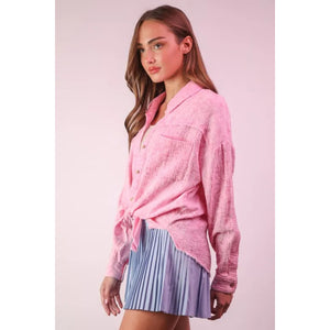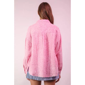 VERY J Full Size Mineral Washed Gauze Shirt Top Plus Size