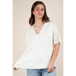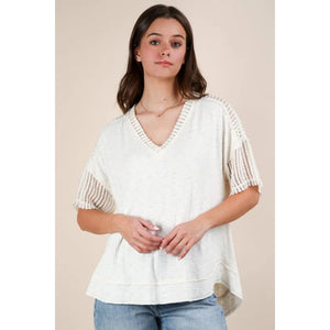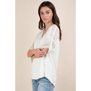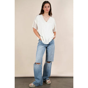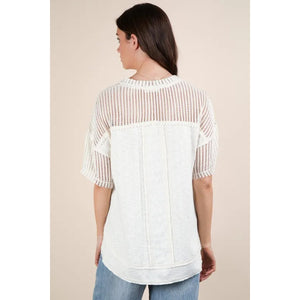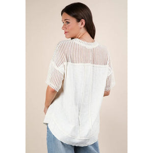 VERY J Full Size Oversized Contrast Knit Comfy Casual Top Plus Size