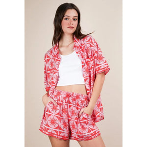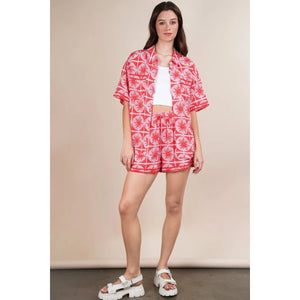 VERY J Full Size Tropical Printed Shirt Top and Shorts Set Plus Size