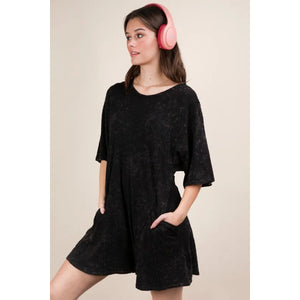 A mineral washed oversized knit comfy romper is a cozy and stylish one-piece outfit option. The mineral washing technique gives the fabric a vintage and lived-in look, while the oversized fit provides comfort and a relaxed feel. This romper is perfect for lounging at home or casual outings. Pair it with sneakers or sandals for a laid-back and effortless look that still exudes style and comfort.