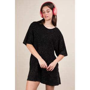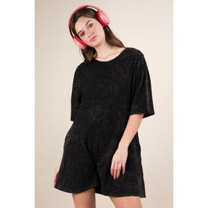 VERY J Mineral Washed Oversized Knit Comfy Romper