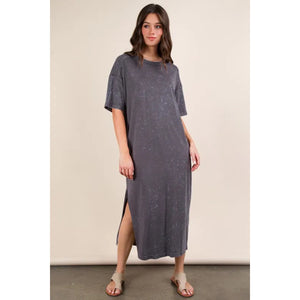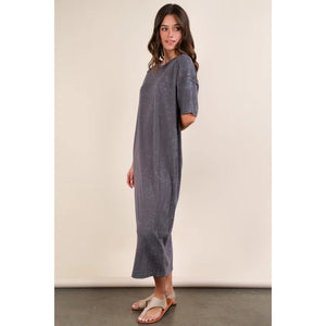 VERY J Plus Size Mineral Washed Casual Comfy Midi Dress