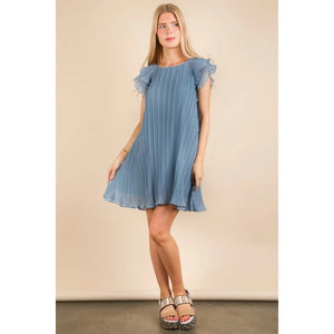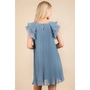 VERY J Plus Size Ruffle Sleeve Pleated Woven Mini Dress