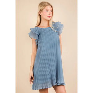The Ruffle Sleeve Pleated Woven Mini Dress is a charming and elegant dress that combines feminine details with a flirty silhouette. The ruffle sleeves add a playful and romantic touch, while the pleated woven fabric creates a flattering and graceful drape. This mini dress is perfect for a variety of occasions, from brunch with friends to a summer wedding. Pair it with heels or sandals for a polished and sophisticated look that will make you stand out in style.