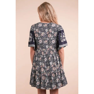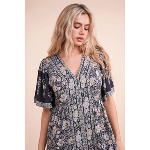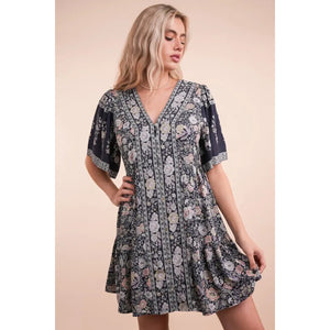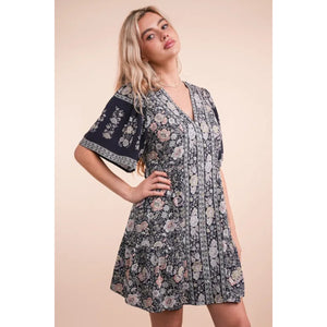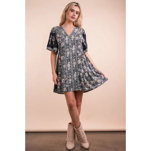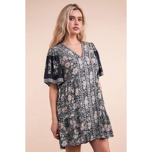 VERY J Shirring Detail Printed Woven Mini Dress