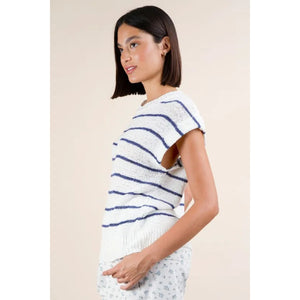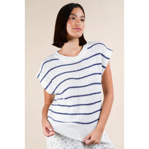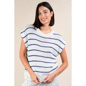 VERY J Striped Knit Sweater Vest Top