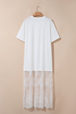 White Floral Patchwork Short Sleeve T Shirt Loose Maxi Dress