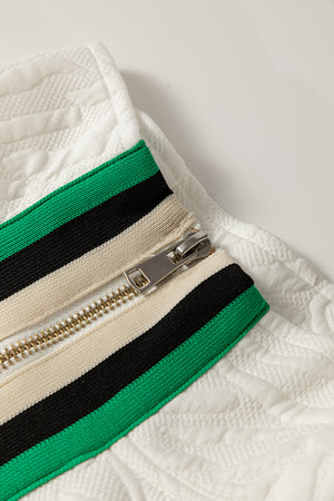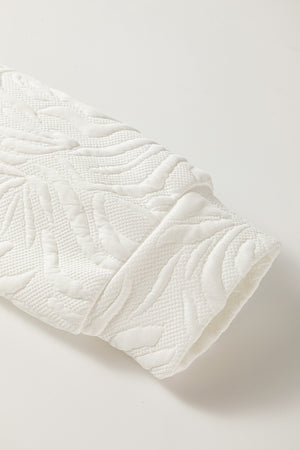 White Jacquard Textured Quarter Zipper Shift Mini Dress