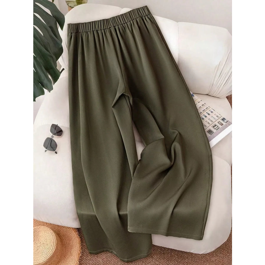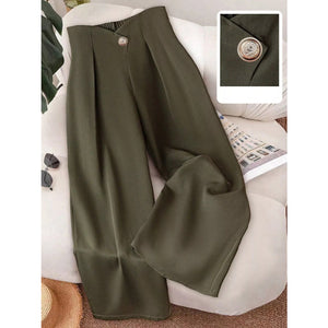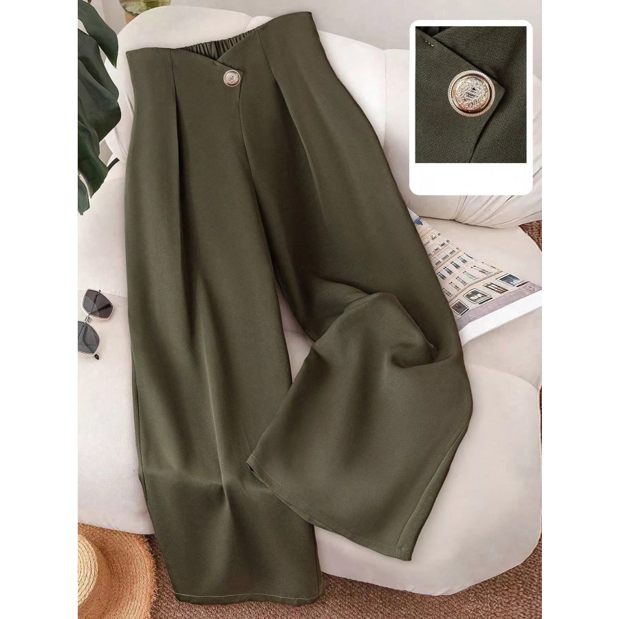 Wide-Leg Button-Accent Pants