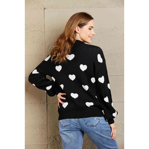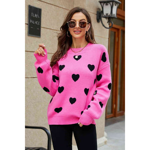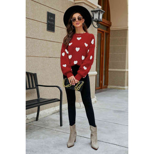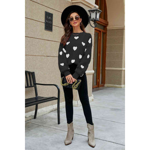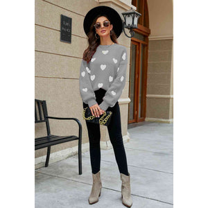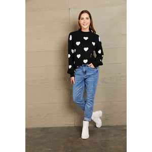 Woven Right Heart Pattern Lantern Sleeve Round Neck Tunic Sweater