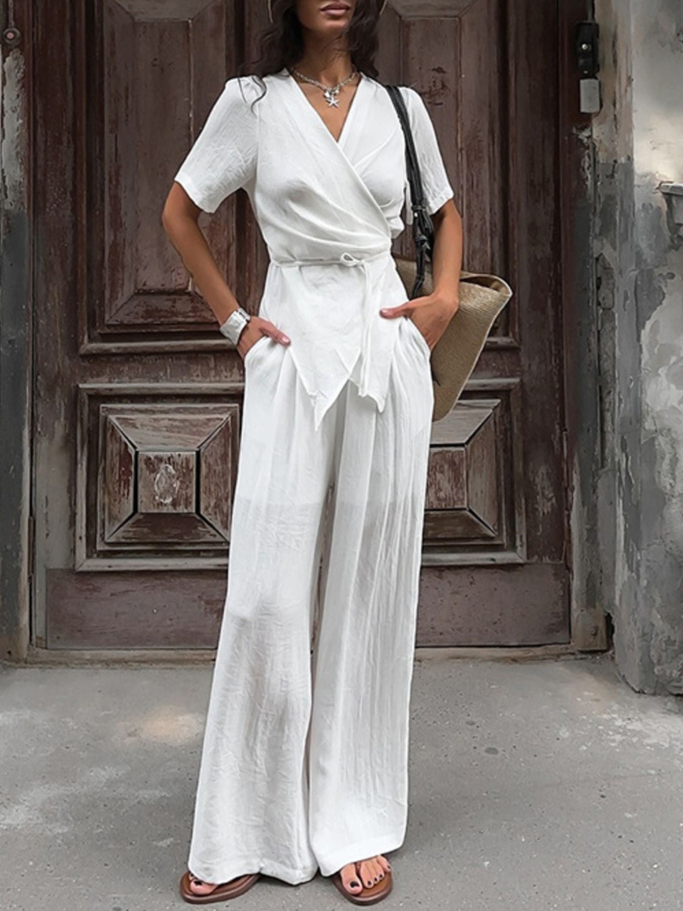 Wrap Top & Wide Leg Pants Set