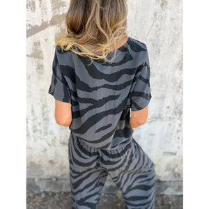 Zebra Print V-Neck Top and Pants Set