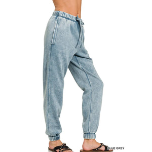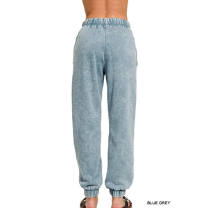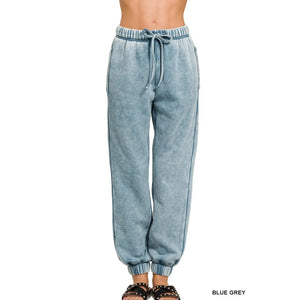 Zenana Acid Wash Fleece Sweatpants with Pockets