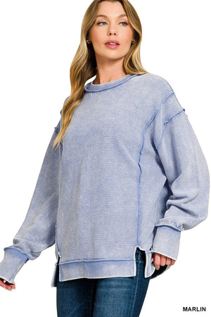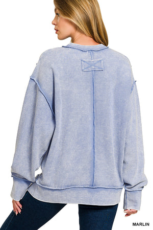 Zenana Acid Washed Double Ribbed Exposed-Seam Sweatshirt