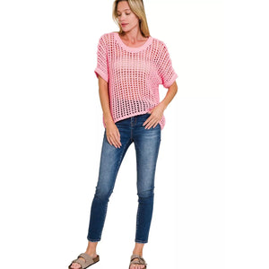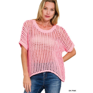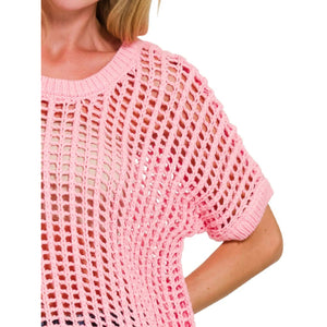 Zenana Fish Net Short Sleeve Crochet Knit Cover Up