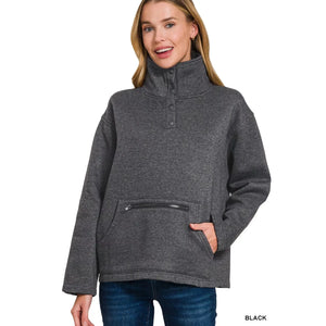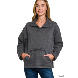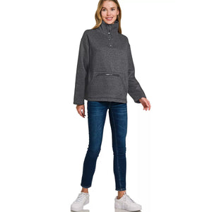 Zenana Fleece Washed High Neck Kangaroo Pocket Sweatshirt