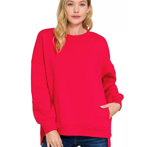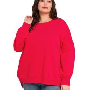 Zenana Full Size Fleece Hi-low Boyfriend Sweatshirts with Pockets Plus Size