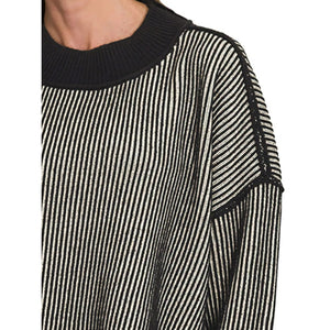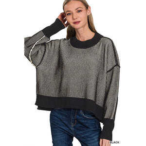 Zenana Ribbed Exposed Seam Two Tone Sweater