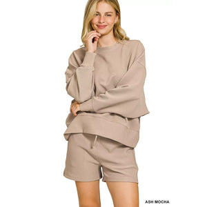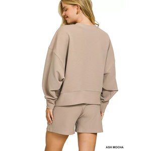 Zenana Ribbed Round Neck Pullover and Shorts Set