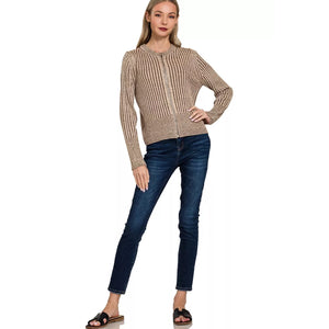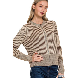 Zenana Ribbed Two Tone Zip Up Sweater Cardigan
