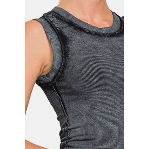 The Washed Ribbed Round Neck Slim Tank is a classic and versatile piece for your wardrobe. Its slim fit and ribbed texture offer a flattering and comfortable wear. The round neck design is timeless and easy to style with various bottoms. The washed finish gives it a soft and relaxed look, perfect for casual everyday wear. This tank top is great for layering or wearing on its own during warmer weather. Add this essential piece to your collection for effortless and chic outfit options.