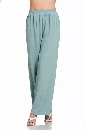 Zenana Woven Airflow Elastic Waistband Pants
